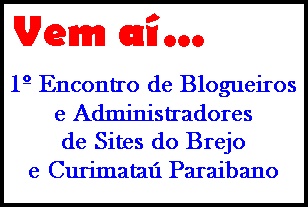 O 1º Encontro de Blogueiros e Administradores de Sites do Brejo e Curimataú Paraibano terá logomarca que será escolhida por meio de votação dos organizadores e sites parceiros que estão cadastrados junto a equipe que criará a Associação dos Blogueiros e Administradores de Sites. Portanto, envie sua logomarca, independente de ser ou não blogueiro. Já temos algumas criações que serão avaliadas e divulgaremos a "eleita" no dia do evento.